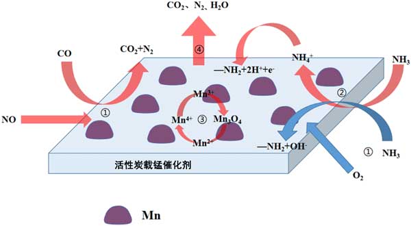 圖4:活性炭載錳催化劑低溫CO+NH3偶聯(lián)脫硝機(jī)理圖。