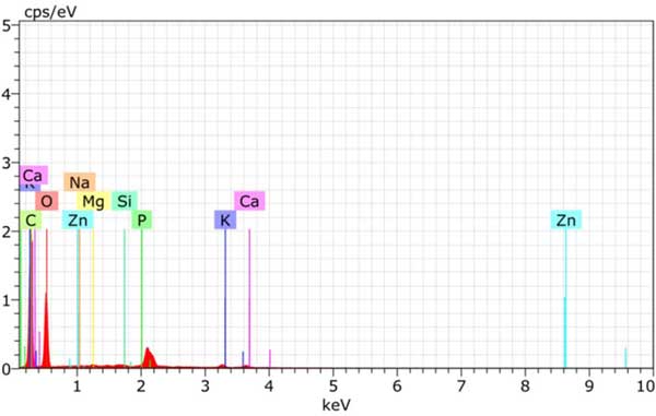 揮發(fā)物含量直接在自動(dòng)近似分析儀中測(cè)量。當(dāng)爐油樣品燃燒完全時(shí),不可燃?xì)埩粑锿ㄟ^(guò)灰分含量反映出來(lái)。在此過(guò)程中使用可承受300至400℃溫度的高溫馬弗爐。在空氣中存在氧氣的情況下,某些物質(zhì)(如水和其他揮發(fā)性元素)會(huì)燃燒,而其他物質(zhì)(包括有機(jī)分子)會(huì)蒸發(fā)。通過(guò)比較灰化前后樣品的重量可以計(jì)算出樣品中的灰分含量。固定碳的計(jì)算方法是從100中減去揮發(fā)性物質(zhì)的百分比、水分含量和灰分含量。活性炭的堆積密度是借助密度計(jì)。用能量色散X射線分析法分析活性炭的化學(xué)成分圖2。活性炭的EDAX分析具有由C、O、Zn等組成的元素。