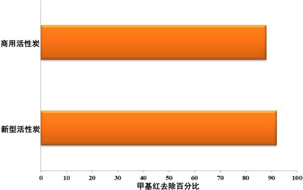 經(jīng)過(guò)批量吸附測(cè)試數(shù)據(jù)后,將新型活性炭的結(jié)果與當(dāng)?shù)乜捎玫纳逃没钚蕴窟M(jìn)行了比較。圖4表示與活性炭的比較實(shí)驗(yàn)數(shù)據(jù)。