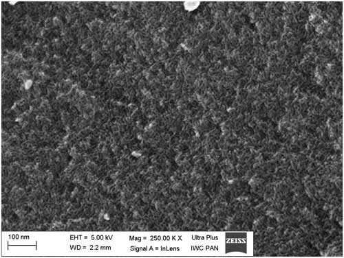 采用檸檬酸應用合成方法,通過軟模板法獲得活性炭 。在實驗的低溫(-196℃)氮吸附-解吸等溫線的基礎上確定了表征所研究活性炭的介孔結構的基本標準參數。對于獲得的活性炭圖像,使用掃描電子顯微鏡(SEM),發現活性炭材料具有有序的,均勻的多孔結構,中孔尺寸約6nm(圖1)。