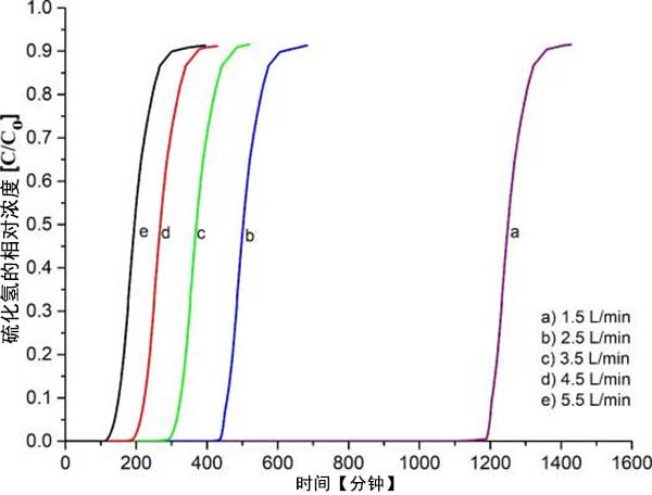 通過使用經受不同操作參數的混合氣體測試活性炭性能,例如流速,所用長度床,所用氣體類型和活性炭。為了確定吸附容量,穿透點和飽和點分別表示硫化氫濃度何時在出口流處達到1ppm和1000ppm。此外,數據表示為重復三次的平均結果。