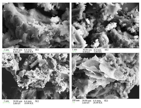 掃描電子顯微鏡分析:SEM研究證實(shí)了氧化鋅在活性炭載體上的負(fù)載,圖1示出了活性炭的SEM圖像?梢钥闯,活性炭呈細(xì)孔的不規(guī)則圖案。另外,氧化鋅顆粒沉積在活性炭的表面和孔中。仔細(xì)觀察表明活性炭表面上的片狀氧化鋅結(jié)構(gòu)。