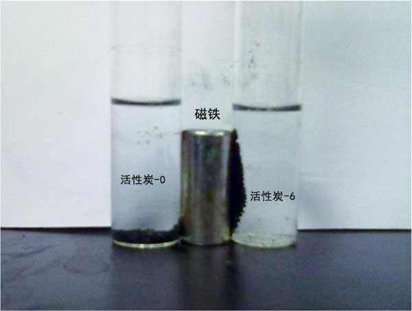 (3)在碳化和活化過程中,殘留的四氧化三鐵和金屬鐵對所得活性炭產生磁性。