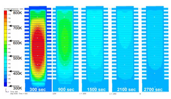 圖3:僅具有自然對流的冷卻階段的數值傳熱分析。
