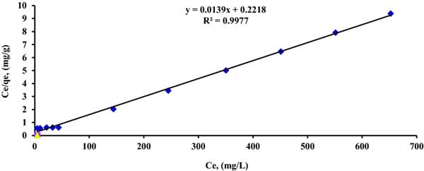 吸附等溫線可以清楚地表征釷與改性活性炭吸附劑的相互作用途徑。平衡研究通常用于吸附過程的設計和理解吸附機理。釷離子可以通過幾種機制吸附在固體載體的表面上。根據蘭茂爾吸附等溫式的假設,釷的吸收作用在單層均勻的表面上,并且所有金屬結合位點在能量上相同。