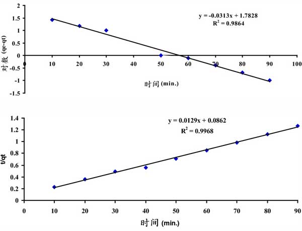 圖5:用三苯基氧化膦改性活性炭的釷離子偽一級和偽二級吸附模型。