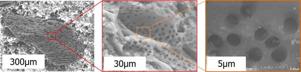 為實驗準(zhǔn)備了兩種類型的樣品,無裂縫標(biāo)本和帶裂縫的標(biāo)本。樣品的尺寸為20×20×4mm。使用丙烯酸板形成裂縫。使用椰殼制備的載銀活性炭(活性炭+0.1%AgCl),并使用氯化銀實現(xiàn)銀的浸漬。盡管粉末粒度具有寬的尺寸分布,但250-500μm的顆粒占約90%的顆粒。圖2顯示了活性炭表面結(jié)構(gòu)的掃描電子顯微鏡(SEM)圖像:發(fā)現(xiàn)其表面是多孔的,并且在大孔內(nèi)部觀察到幾個中孔。在實驗期間使用恒電位儀在兩種條件下測量樣品的開路電位:與活性炭接觸和不接觸活性炭。在實驗之后,使用光學(xué)顯微鏡觀察樣品表面。測量在開路條件下進行近40小時(在中性溶液中)和24小時(在堿性溶液中)。